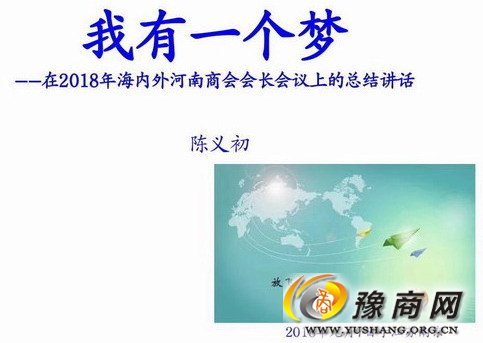2018年1月7日,2018年海内外河南商会会长会议在南京召开。九届河南省政协副主席、河南省豫商联合会会长陈义初在大会上致词《我有一个梦》,全文如下: