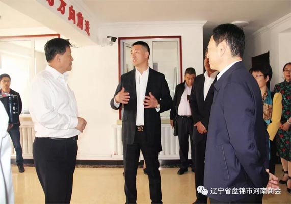 为加强思想政治引领,贯彻落实“关于促进工商联所属商会改革和发展的实施意见”中对于商会的综合要求和部署,凝聚非公经济人士广泛共识,促进民企发展。5月10日,全国工商联第四联系调研工作组由中国民间商会副会长、奥克集团股份公司董事长朱建民组长带队,全国工商联经济部副部长袁媛、经济部综合处处长沙霖、天津工商联副主席牛予其、内蒙古自治区工商联副主席孙清、辽宁省工商联副主席杨翠杰和几十名知名企业家及盘锦市、区等领导陪同,来盘锦市河南商会进行调研。
