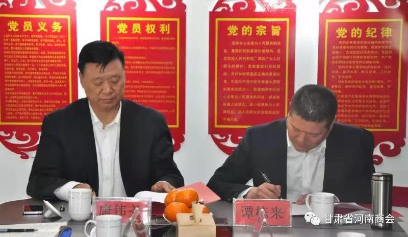 甘肃政法大学党委委员、副校长唐伟尧代表校方与甘肃省河南商会会长谭栋来签约,并向甘肃省河南商会颁授“甘肃政法大学学生专业实习基地”牌匾。