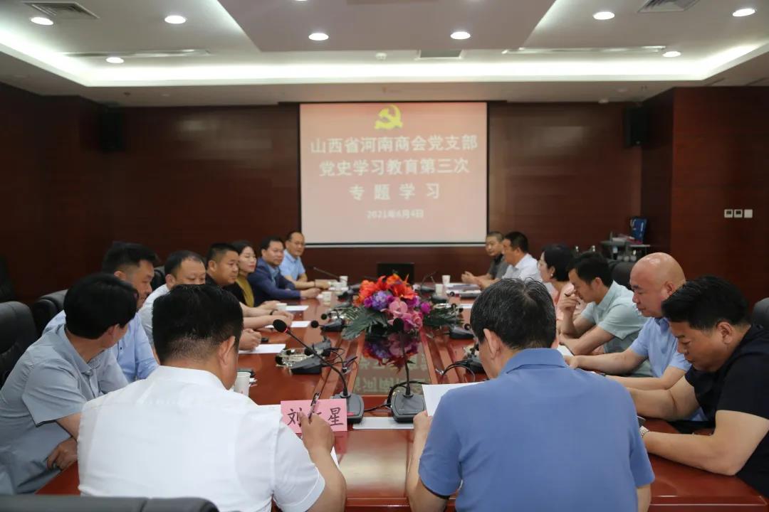 按照省工商联行业党委党史学习教育统一安排,结合山西省河南商会党支部党史学习教育活动方案,6月4日上午,党支部组织党员、入党积极分子、党员发展对象、分会会长等20余人召开党史学习教育第三次专题学习会议。会长刘红星出席并讲话。