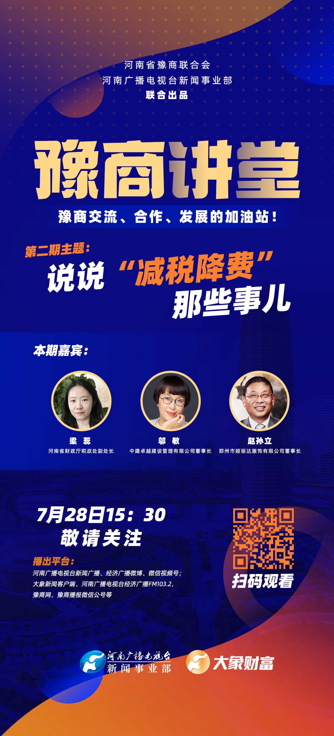 《豫商讲堂》第二期《说说“减税降费”那些事儿》周四播出,敬请关注!